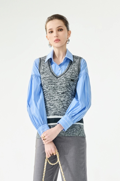 產品名稱:港霧灰跳色腰頭套裝長褲